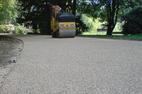 Gussasphalt in Optik einer wassergebundenen Wegedecke im Schlosspark Dahme/Mark